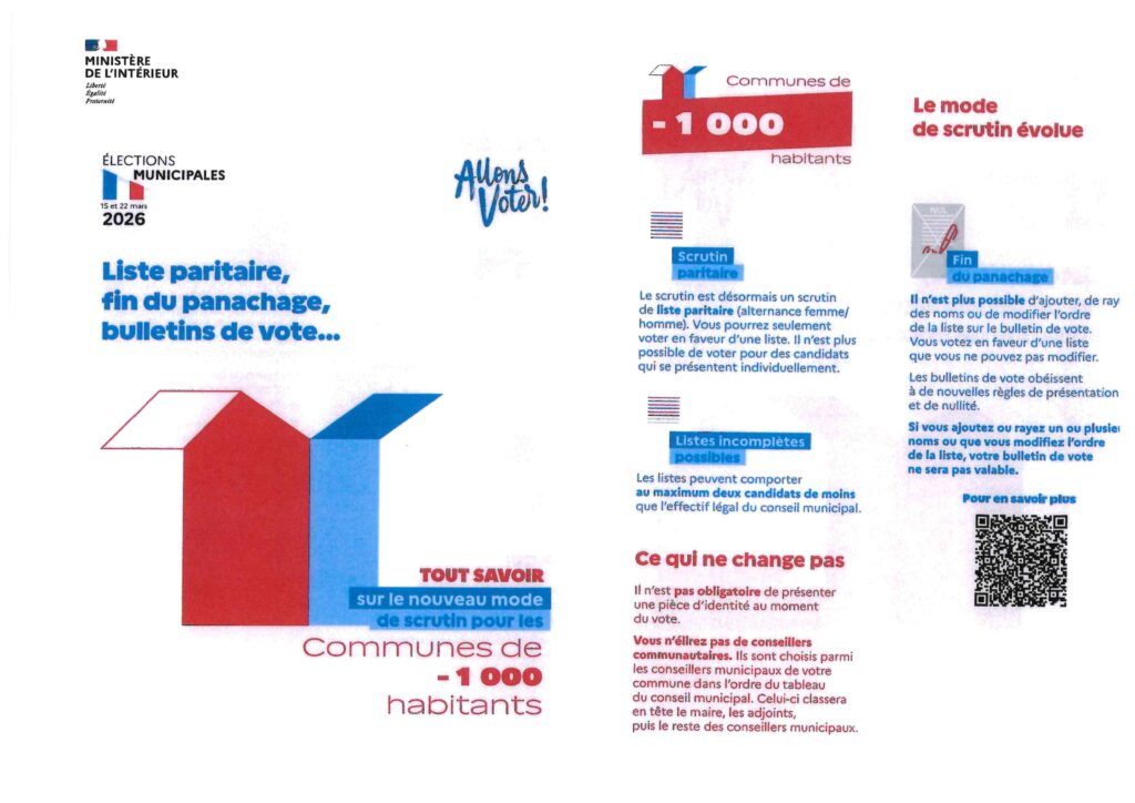 Tout savoir sur le nouveau mode de scrutin : commune de – de 1000 habitants Auteur/autrice de la publication :Corinne Micheau Publication publiée :30 janvier 2026 Post category:Non classé Commentaires de la publication :0 commentaire Please Share This Partager ce contenu Ouvrir dans une autre fenêtre Ouvrir dans une autre fenêtre Ouvrir dans une autre fenêtre Ouvrir dans une autre fenêtre Ouvrir dans une autre fenêtre Ouvrir dans une autre fenêtre Ouvrir dans une autre fenêtre Ouvrir dans une autre fenêtre Ouvrir dans une autre fenêtre Ouvrir dans une autre fenêtre Vous devriez également aimer Arrêté temporaire de circulation 20 septembre 2021 Journée Portes Ouvertes 26 mars 2021 Restaurant scolaire 5 décembre 2025 Laisser un commentaire Annuler la réponseCommentEnter your name or username to comment Enter your email address to comment Saisir l’URL de votre site (facultatif) Enregistrer mon nom, mon e-mail et mon site dans le navigateur pour mon prochain commentaire.