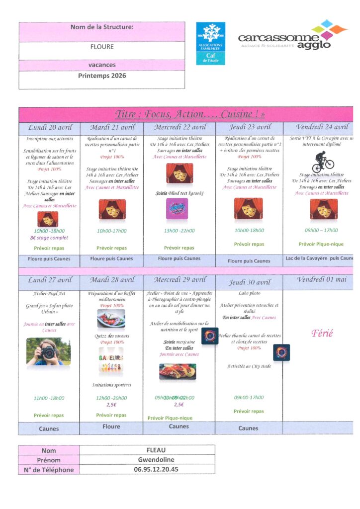 Planning Ados vacances de printemps Auteur/autrice de la publication :Corinne Micheau Publication publiée :26 mars 2026 Post category:Non classé Commentaires de la publication :0 commentaire Please Share This Partager ce contenu Ouvrir dans une autre fenêtre Ouvrir dans une autre fenêtre Ouvrir dans une autre fenêtre Ouvrir dans une autre fenêtre Ouvrir dans une autre fenêtre Ouvrir dans une autre fenêtre Ouvrir dans une autre fenêtre Ouvrir dans une autre fenêtre Ouvrir dans une autre fenêtre Ouvrir dans une autre fenêtre Vous devriez également aimer Rentrée septembre 2022 : École Maternelle 14 février 2022 Coupure de courant 23 août 2022 MAM Maison d’Assistantes Maternelles 6 juin 2025 Laisser un commentaire Annuler la réponseCommentEnter your name or username to comment Enter your email address to comment Saisir l’URL de votre site (facultatif) Enregistrer mon nom, mon e-mail et mon site dans le navigateur pour mon prochain commentaire.
